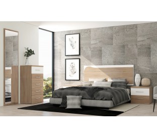 Dormitorio completo con cómoda o sinfonier. Color Cambrian combinado con Blanco.