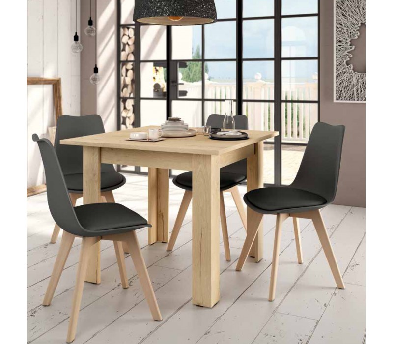 Esta mesa comedor cuadrada es fija y mide 90x90 cm. Está fabricada con tablero de partículas melaminizado de 22 mm y molduras con cantos aplacados en P.V.C.