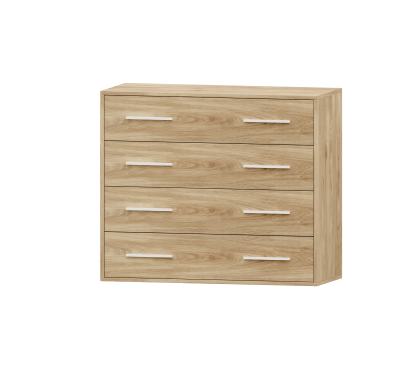 Se trata de una cómoda de 4 cajones con líneas rectas a la que se le puede añadir patas, aportándonos una decoración elegante y actual a nuestro hogar.