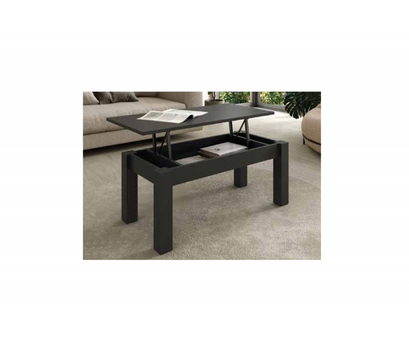 Es una mesa centro con líneas rectas y minimalistas. Su color es Grafito. Mide 100 x 50 cm. Es una mesa elevable.