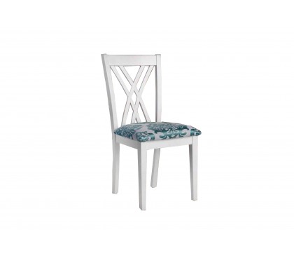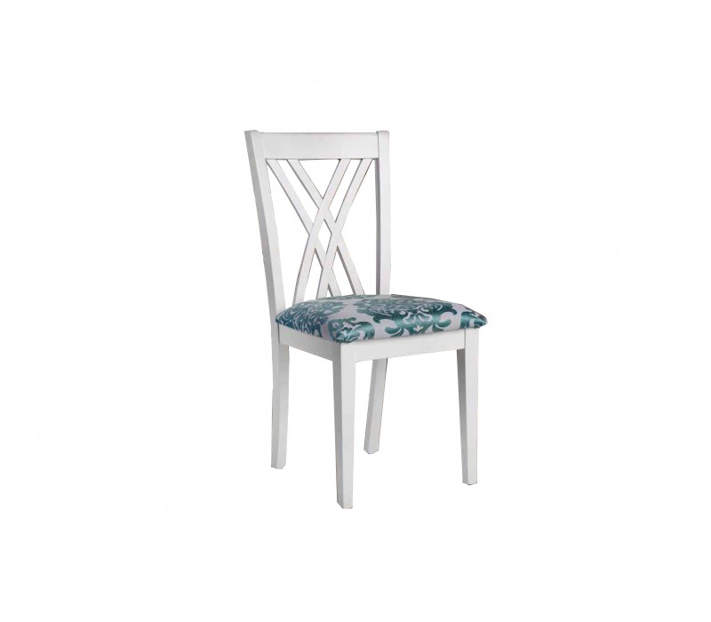 Esta silla es de madera de pino. Tiene un respaldo alto y su asiento está tapizado con tela antimanchas.