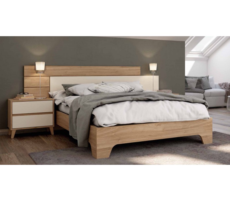Se trata de un dormitorio que nos aporta elegancia y al mismo tiempo sencillez. Está formado por un cabecero galería y dos mesita noche de 2 cajones con patas.