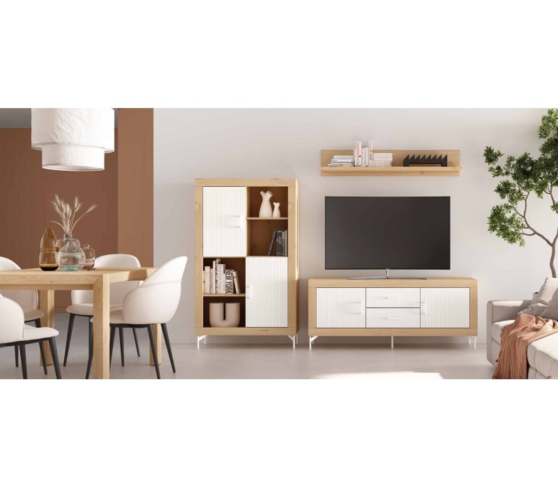 Es una composición de estilo nórdico pensada para crear ambientes únicos donde se unen estética y funcionalidad. El blanco es el mejor aliado para un salón. Gana espacio y le da un efecto lumínico.