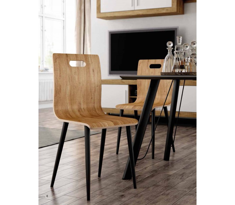 Silla con respaldo y asiento de tablero contrachapado curvado en cinco acabados (cambrian, artic, mango, vintage y soul blanco).