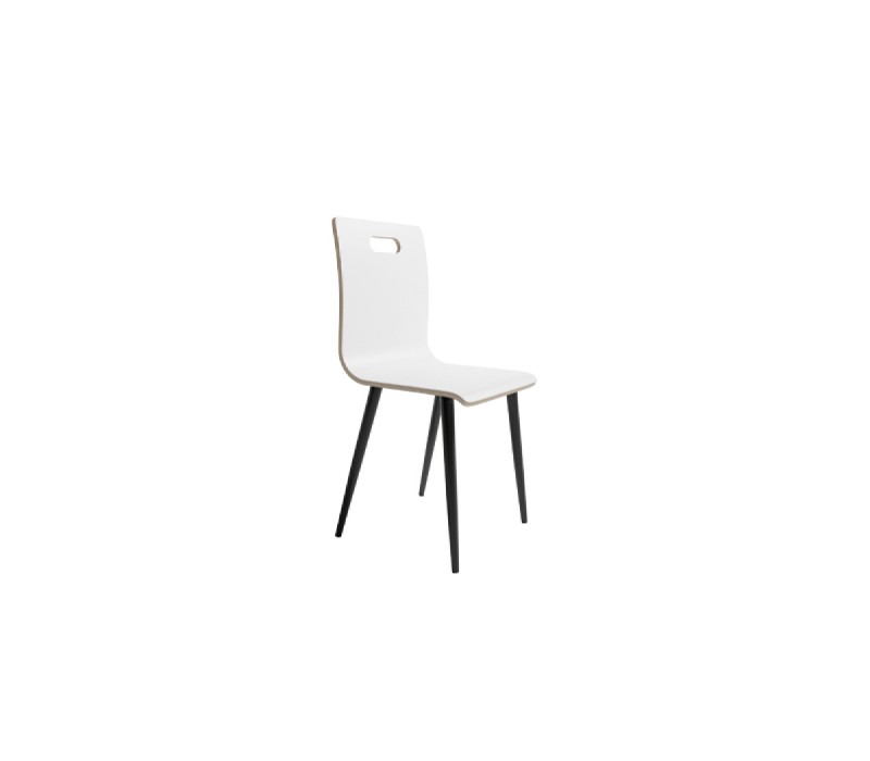Silla con respaldo y asiento de tablero contrachapado curvado en cinco acabados (cambrian, artic, mango, vintage y soul blanco).